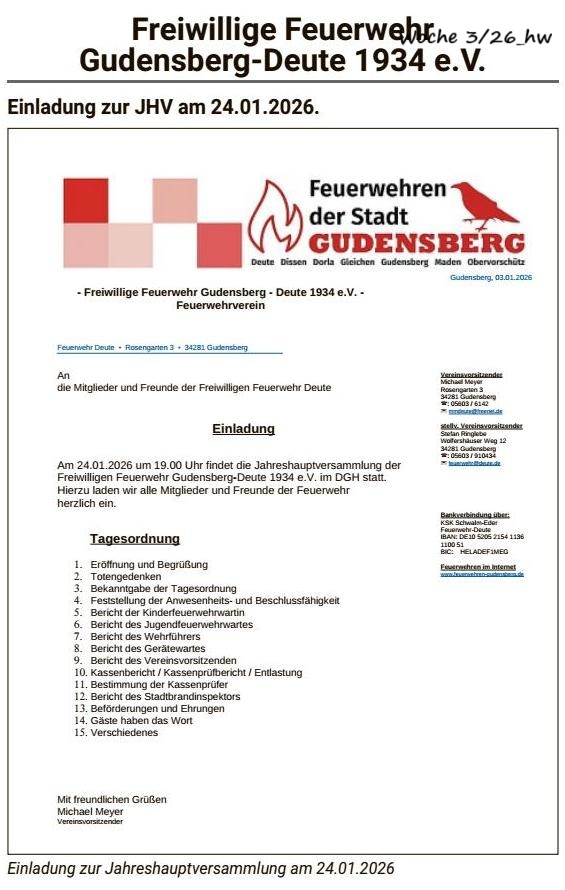 Einladung zur JHV 2026 der FFW Deute