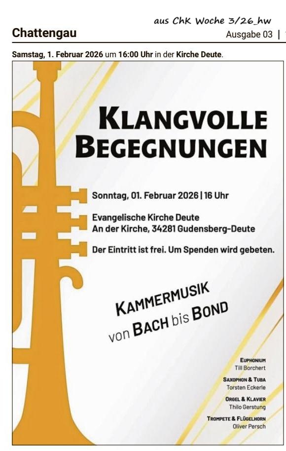 Kirchenkonzert am Sonntag, 1.Febr. 2026