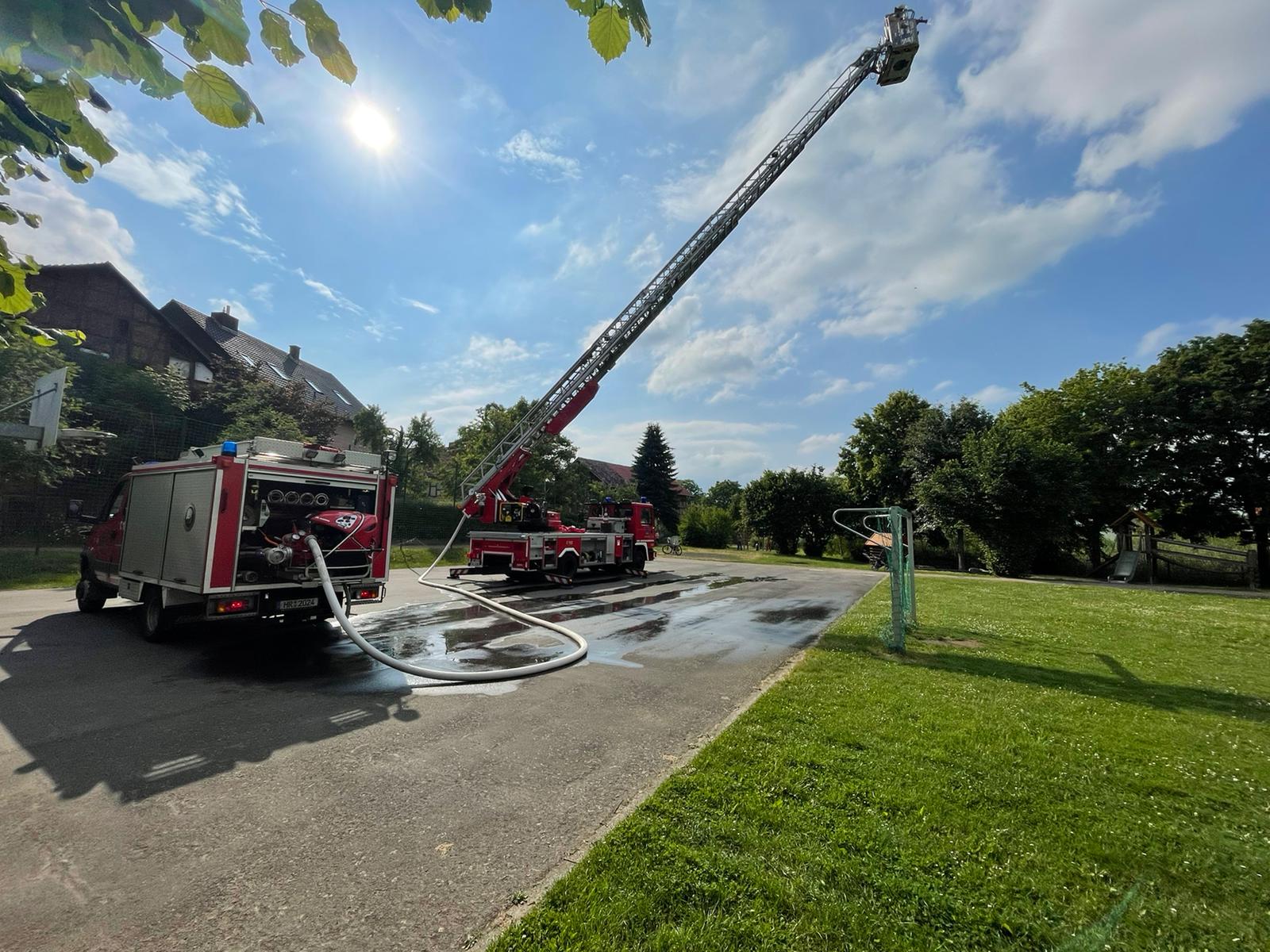 Dankeschön an Marvin Happel für das Vorführen der Drehleiter und Patrick Happel der mit dem TSF-W zur Unterstützung dazu kam.